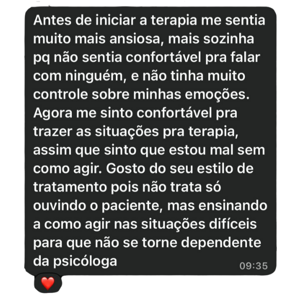 A terapia é um espaço de escuta qualificada para compreender emoções, identificar padrões de comportamento e construir novas possibilidades de agir diante da vida.